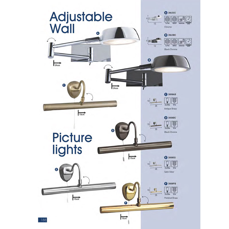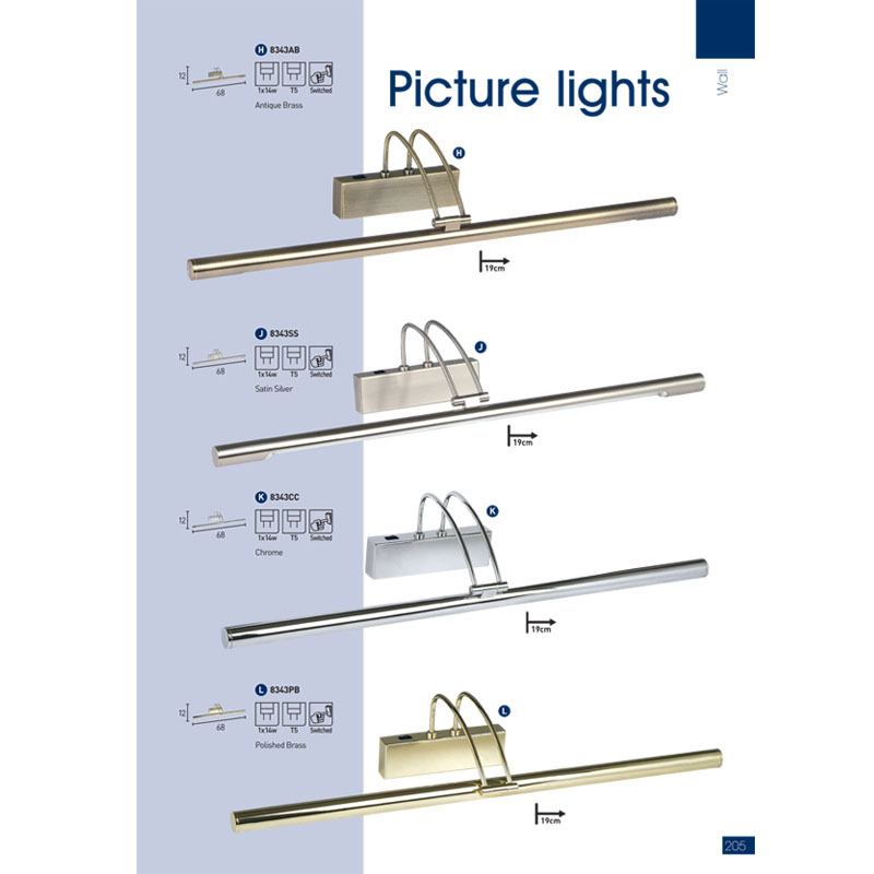 Осветително тяло - аплик, подходящ за осветление на картини от серия осветителни тела Рicture lights. Изработен от метал с месингово покритие и подвижна глава. Производител Searchlight, Англия.