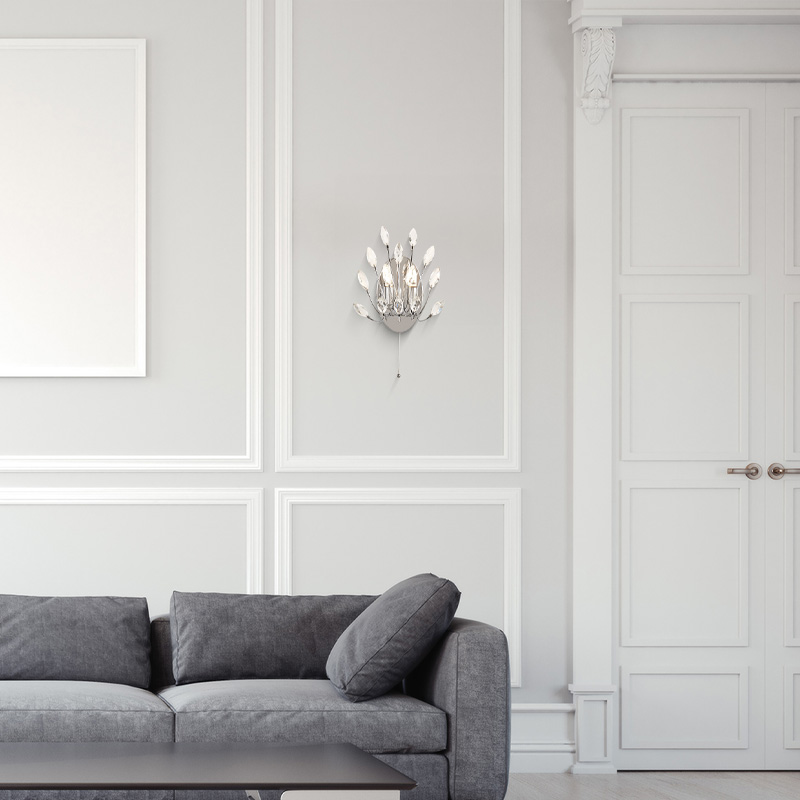 Луксозен аплик Peacock, изработен от метал в цвят хром и декорация от стъклени кристали. Изящен и елегантен апликът ще завърши перфектно вашият луксозен интериор. Дизайнът на осветителното тяло е подходящ за осветление за всекидневна, осветление за спалня, осветление за кухня / трапезария, осветление за заведение, осветление за хотел. Производител Searchlight, Англия.