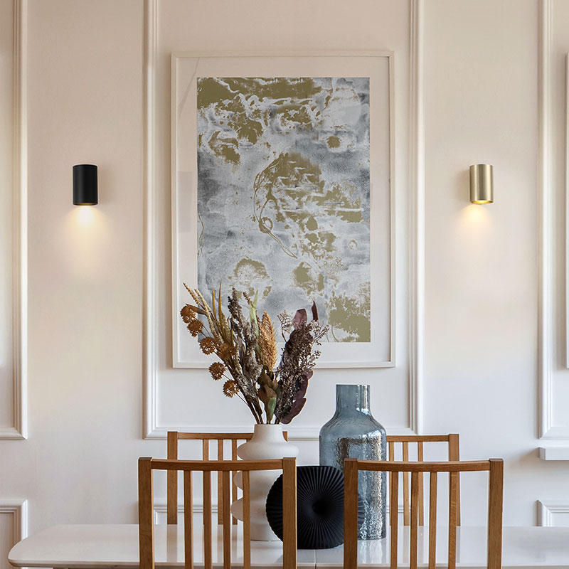 Аплик Cyls е изчистено и модерно осветително тяло с цилиндрична форма, изработено от алуминий в златист цвят. Съчетава минималистичен дизайн с елегантно излъчване, подходящ за съвременни интериори.
