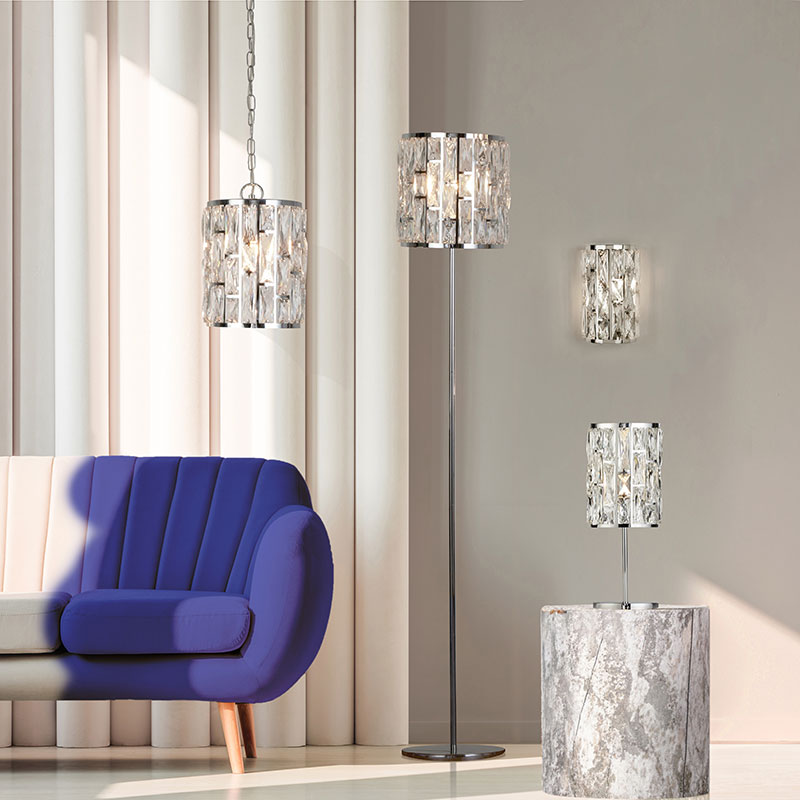 Осветително тяло - аплик BIJOU в модерен стил, изработен от метална основа в цвят хрм и декоративни елементи от кристално стъкло. Дизайнът на аплика е подходящ за осветление за всекидневна, осветление за спалня, осветление за кухня, осветление за хотел. Производител Searchlight, Англия.