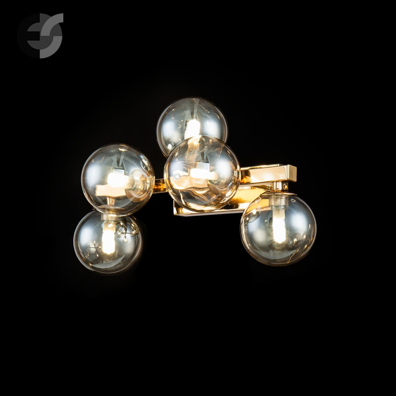Апликът Dallas е не просто осветително тяло, а истинско произведение на изкуството. Изработен от метал в стилен златист цвят и разсейвател от прозрачно издухано стъкло. Апликът е с уникален дизайн, със симулация на молекуларна структура, която го прави изключително интересен и модерен. Лампата за стена Dallas е идеална за осветление във всекидневната, спалнята или коридора, където може да създаде уникална атмосфера и да бъде акцент в интериора.