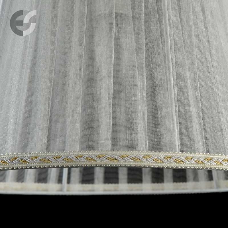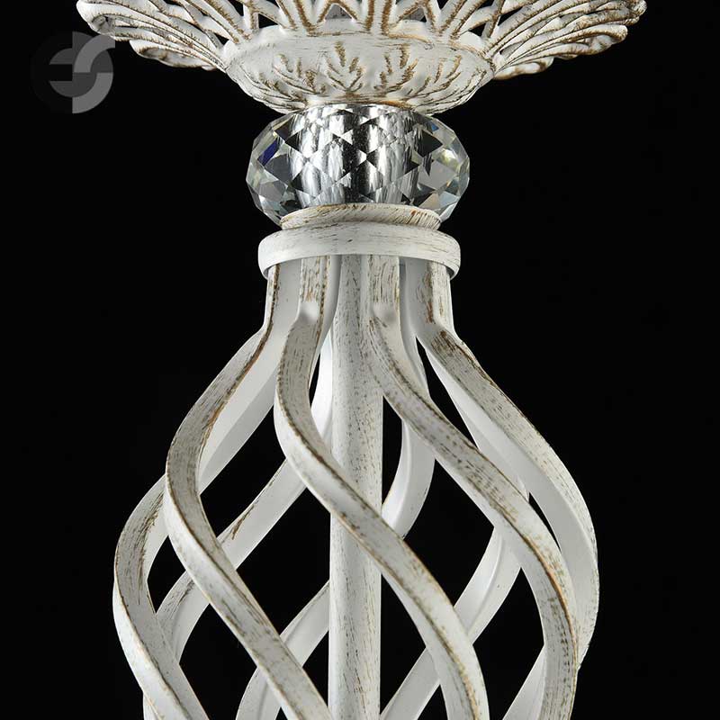 Апликът Grace е изработен от метал с кремава основа, украсена с изящни златисти орнаменти и два плисирани бели абажури от органза в конусовидна форма. Лампата за стена впечатлява с елегантната декорация от кристални висулки, които пречупват светлината и създават пленителна игра на отблясъци в помещението.
