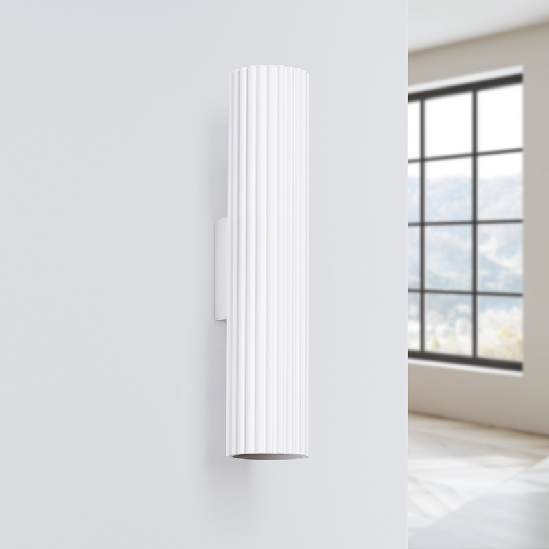 Аплик KARBON 30 бял, изработена от алуминий. Серията KARBON е модерна колекция от осветителни тела с уникална оребрена текстура, която се предлага в различни конфигурации и версии - от полилеи (висящи лампи) и аплици / спотове (стенни лампи) до настолни лампи. Разнообразието от размери и варианти позволява лесно адаптиране към всеки интериор. Серията KARBON предлага богат избор от цветове, включително класическо бяло и елегантно черно, което я подходяща за различни интериорни решения. Освен това се предлага и в актуални цветове като златисто, бежово, маслиненозелено и червена охра, което я прави идеална за модерни интериори и не само. Осветителното тяло е подходящо за всекидневна, коридор, трапезария, спалня или офис помещение. Произведено в Полша. Гаранция 5 години.