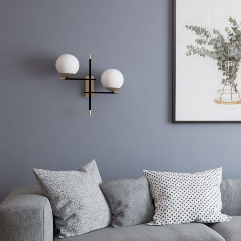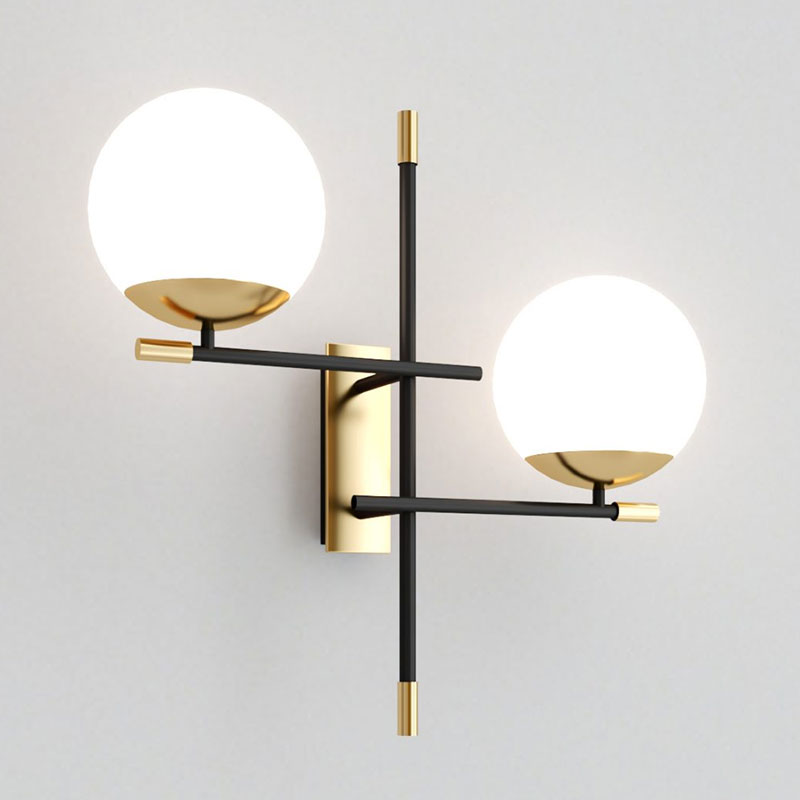 Аплик Nostalgia, изработен от метал в цвят златист с черен акцент и два разсейвателя от издухано стъкло в бяло. Осветителното тяло се отличава със сферичните стъклени елементи, които придават елегантност и лекота на дизайна. Лампата за стена Nostalgia съчетава топлия блясък на златистия метал с контрастиращи черни акценти, създавайки балансирана композиция с характер. Белите стъклени сфери смекчават визията и осигуряват равномерно разпределение на светлината, създавайки приятна атмосфера. Осветителното тяло е идеално за хол, коридор или спалня, където добавя стилен акцент и функционално осветление. Апликът Nostalgia комбинира модерна естетика с нотки на класически елементи, което го прави универсално решение за различни интериорни стилове.