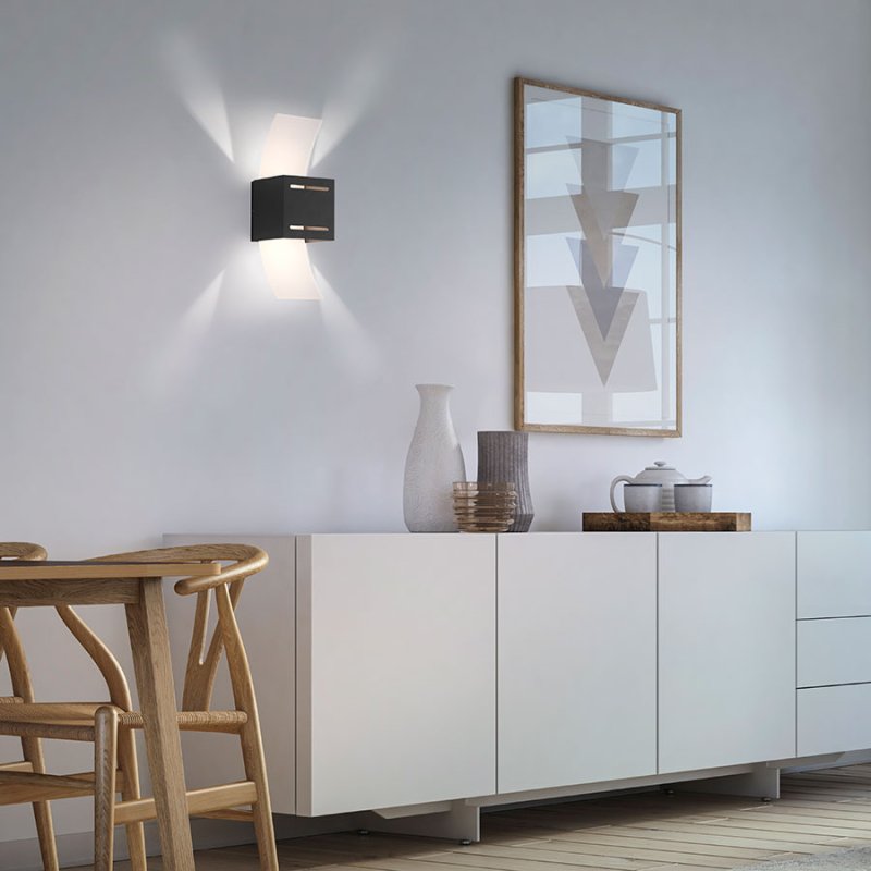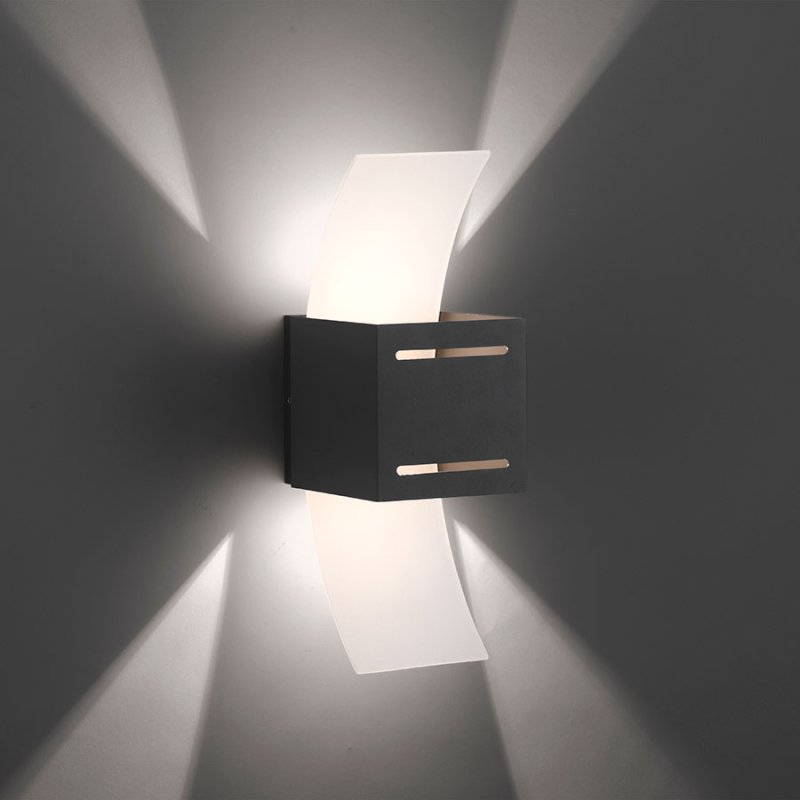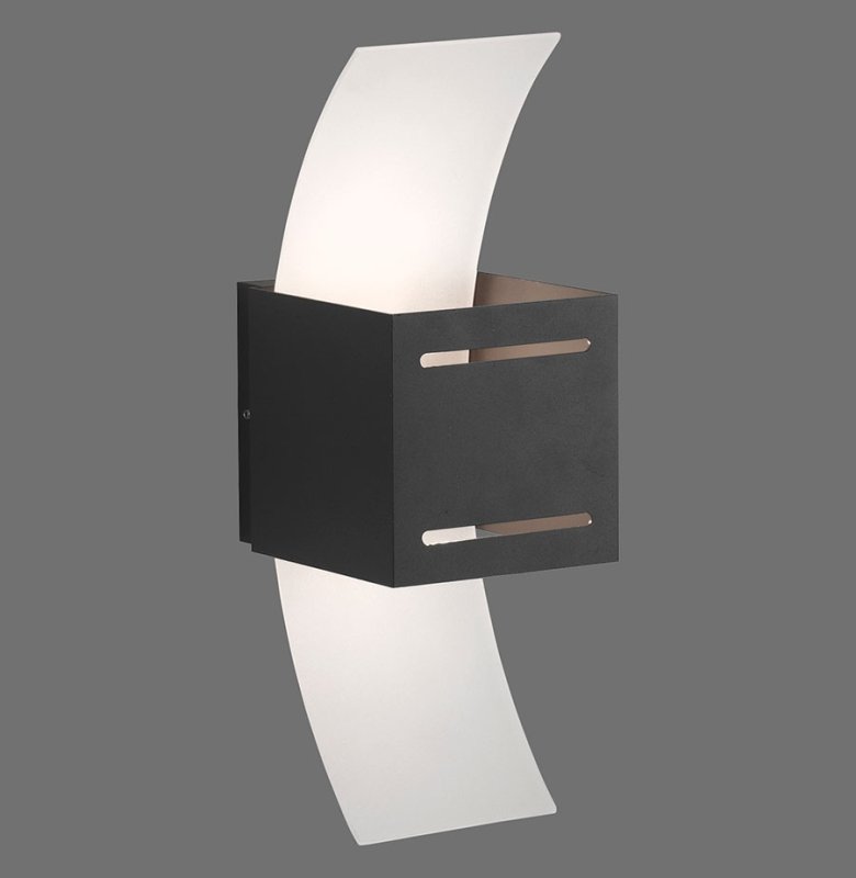 Стенна лампа ORMA в цвят антрацит е с минималистичен дизайн и е ефектно индиректно осветление с квадратна форма. Изработена от алуминий, осветителното тяло впечатлява със своята изчистена форма, а светлината ѝ се отразява върху извита лента, създавайки елегантен лъч върху стената.