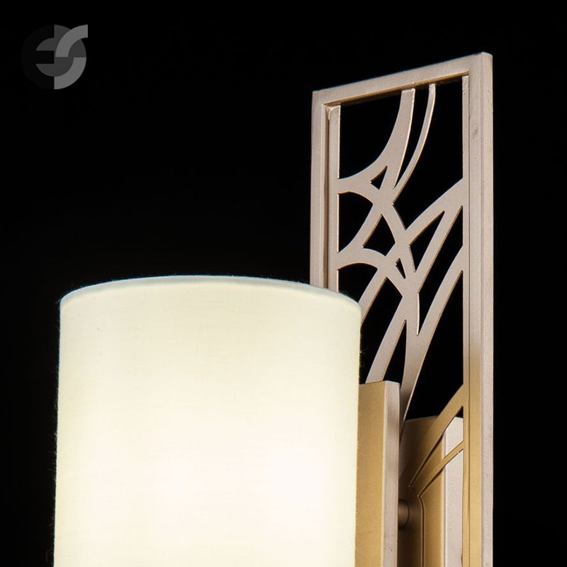 Цилиндричният абажур осигурява мека и приятна светлина, а металната основа и рамо завършват хармоничната композиция, придавайки класически характер на аплика. Подходящ за спалня, където нежната светлина създава отпускаща атмосфера, идеална за четене преди сън или като допълнително осветление. Класическият стил на аплика го прави подходящ за традиционни и съвременни интериори, където може да се съчетае с други класически елементи в обзавеждането.