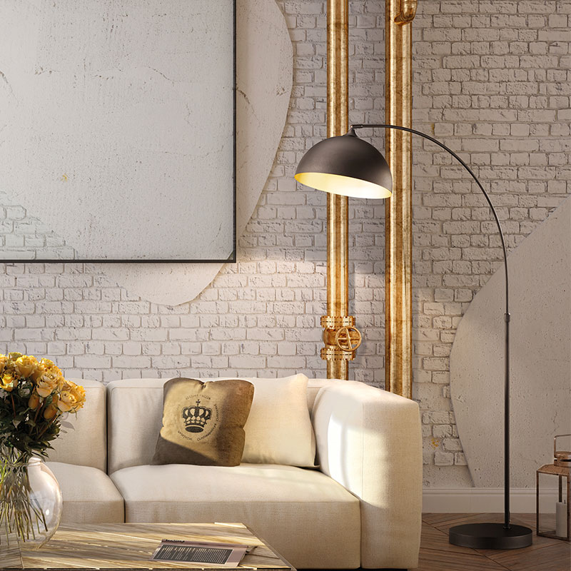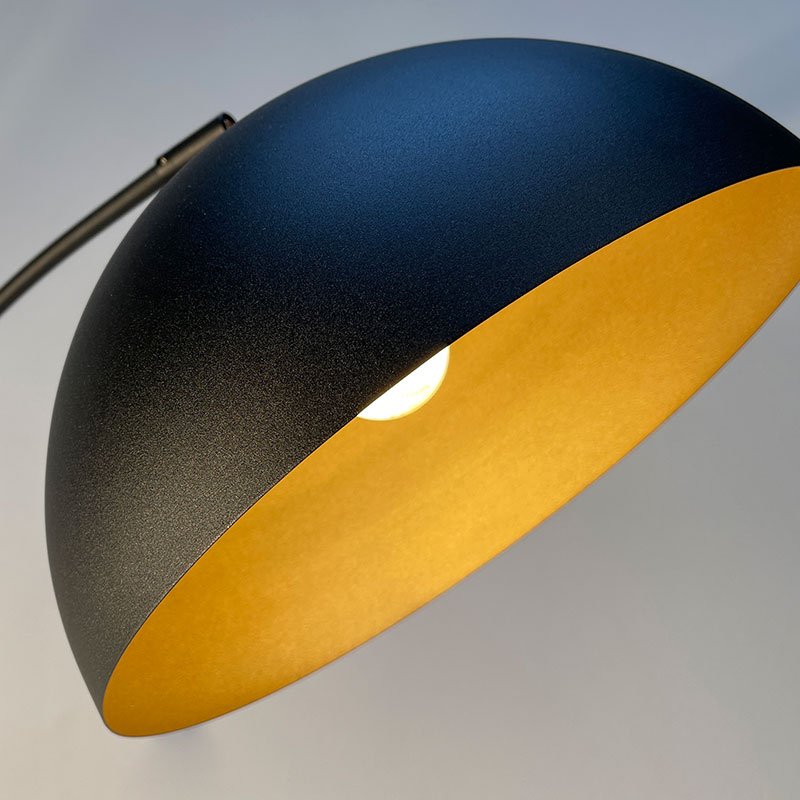 Винтидж лампион Leitung е изработен от метал в елегантен пясъчно-черен цвят с полукръгъл разсейвател и златиста вътрешна част. Дизайнът е минималистичен, но с характерен индустриален акцент, който лесно се вписва в модерни, класически и винтидж интериори.