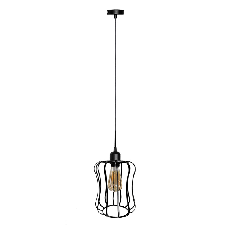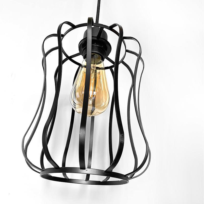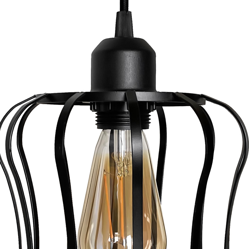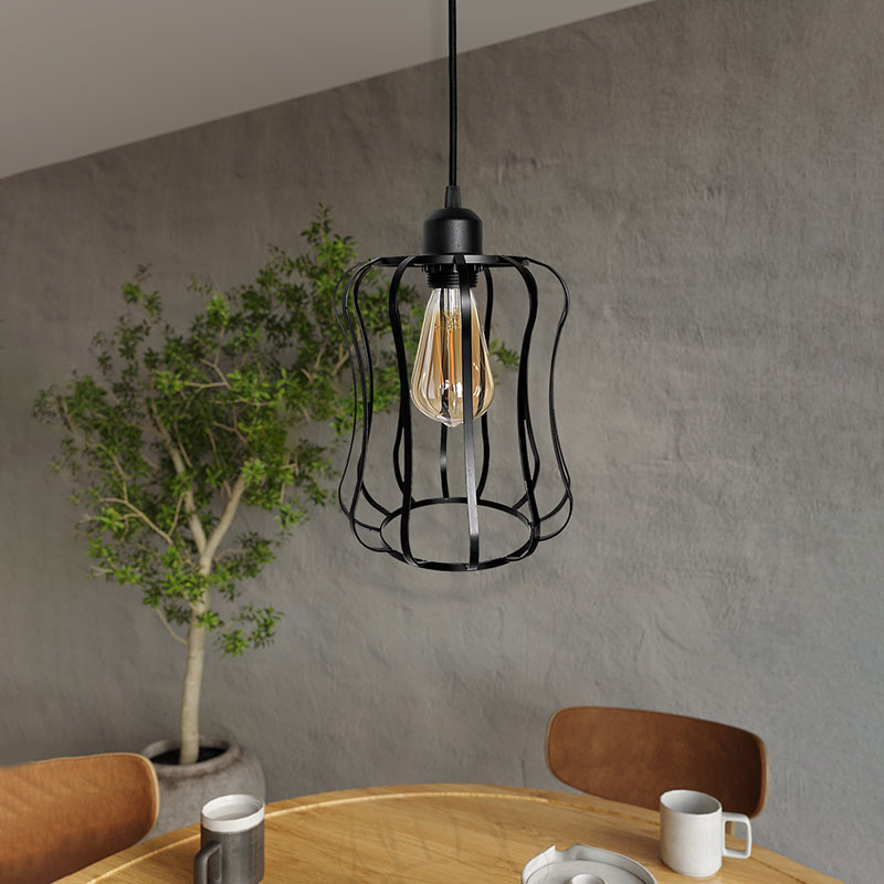 Осветително тяло - полилей във винтидж стил GRID, изработен от метална основа  и дифузер тип решетка в матирано черен цвят. С текстилен кабел. Подходящ за осветление на кухня, осветление на всекидневна, осветление на заведение. Производител COUP LIGHT, България.