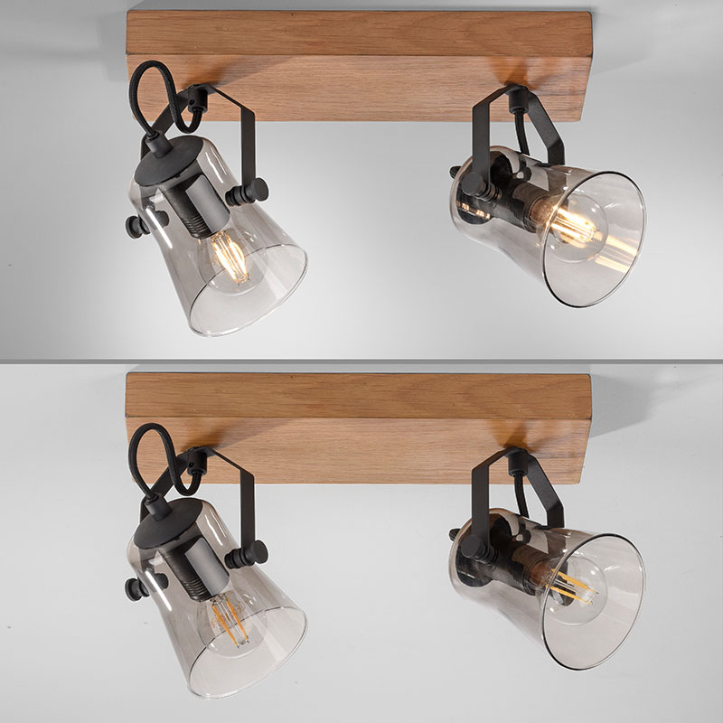 Осветително тяло - винтидж спот Green Langström, изработен от основа от дърво, метални елементи и стъклени разсейватели, които са подвижни, за прецизно насочване на светлината. Дизайнът на осветителното тяло е подходящ за осветление за всекидневна, осветление за кухня, осветление за коридор. Производител Leuchten Direkt, Германия.
