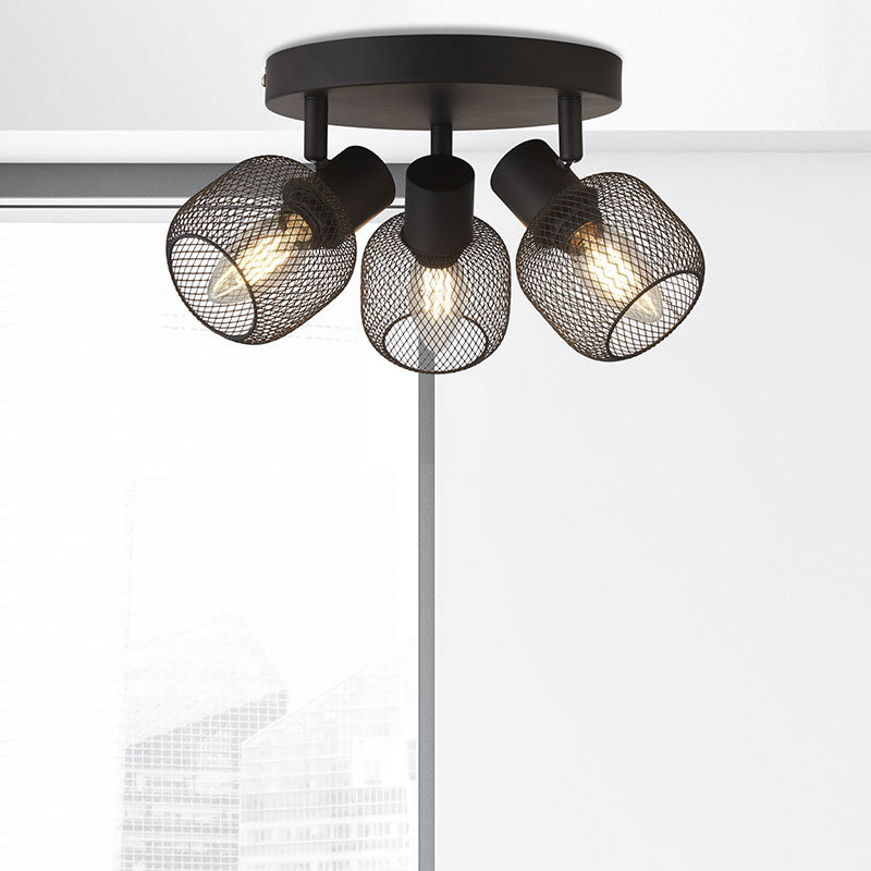 Винтидж спот Meshy е изработен от метал в черен цвят и разсейвател тип мрежа, койтосъздава интересно отражение на светлината върху стената. Светлоиточниците на спот лампата са подвижни, което позволява лесно и удобно насочване на светлината в желаната посока. Осветителното тяло е подходящо за допълнително осветление в кухня, трапезария или коридор.