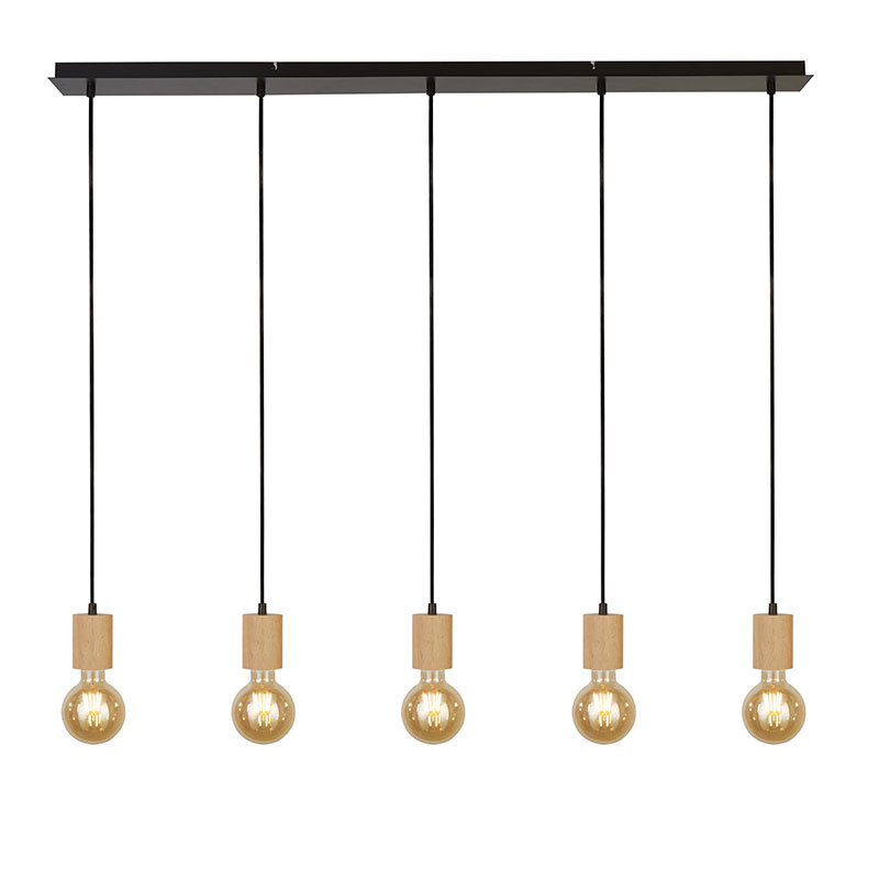 Висяща линейна лампа Spinny е изработена от метална основа в черен мат цвят, допълнена с дървени елементи, която придава семпла и уютна атмосфера. Дизайнът е подходящ за различни стилове на интериор. Възможност за регулиране на височината преди монтаж, за максимална адаптация, според помещението. Полилеят е без включени крушки, което ви дава възможност за допълнително персонализиране според стила на интериора. Разпределението на светлоизточниците създава равномерно осветяване, което прави осветителното тяло идеално за трапезария, кухня, всекидневна или заведение.