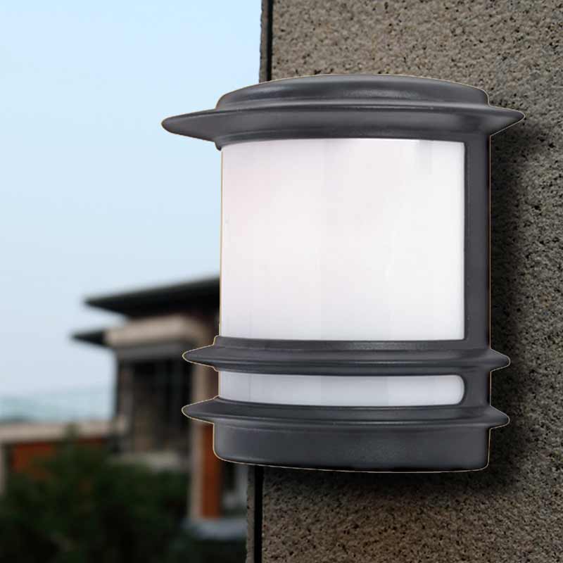 Осветително тяло - аплик за външно осветление от серия Bollards and post lamps, с корпус от лят алуминий, боядисан в черно и дифузер от матирана пластмаса. Производител Searchlight, Англия.