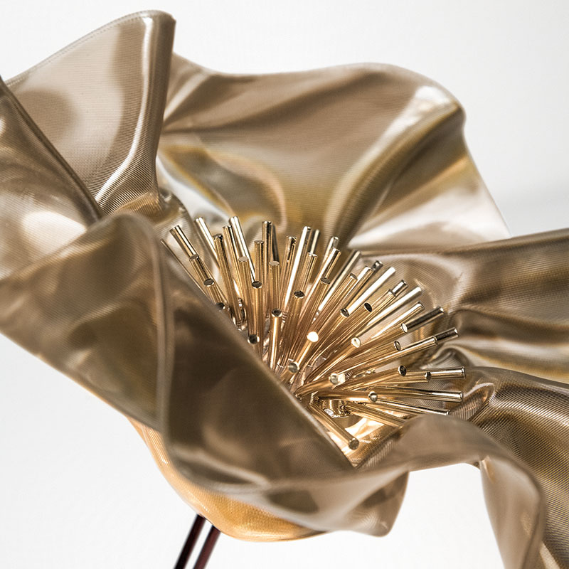 Изработена от патентования технополимер Lentiflex® и меден проводник, LaFleur Velvet носи усещане за деликатност и лукс. Lentiflex® е материал, разработен от италианската компания Slamp, със специален технополимер с лещовидна структура, който улавя и пречупва светлината, създавайки уникални отражения и флуиден ефект. Във варианта Velvet лампата придобива меко златисто излъчване, което я прави подходяща за по-романтични и елегантни интериори.