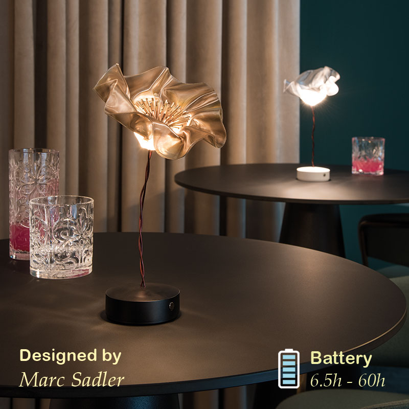 LaFleur Velvet е изискана дизайнерска настолна лампа, създадена от Марк Садлър. Тя е вдъхновена от поезията на природата и пресъздава образа на разцъфнало цвете. Ръчно моделирана от иновативния материал Lentiflex®, лампата се отличава със своя кадифен завършек, който придава топлина, дълбочина и елегантност на светлината.