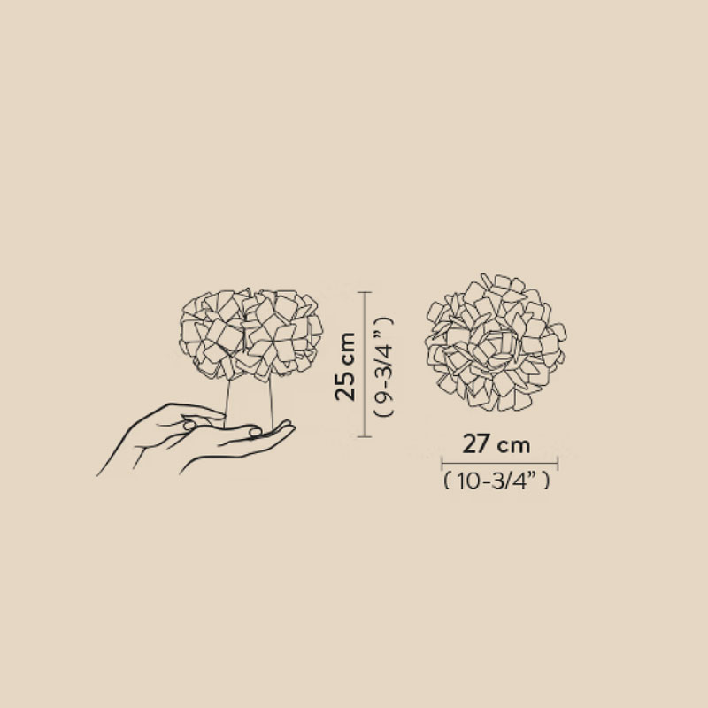 Формата на лампата напомня на ефирен букет от бели листенца, които пречупват светлината и създават ефект на лекота и сияние. Тя е подходяща за нощно шкафче в спалнята, за бюро или като стилна декоративна лампа във всекидневна. Нейният изчистен, но емоционално въздействащ дизайн я прави подходяща както за модерни домове, така и за елегантни обществени интериори.