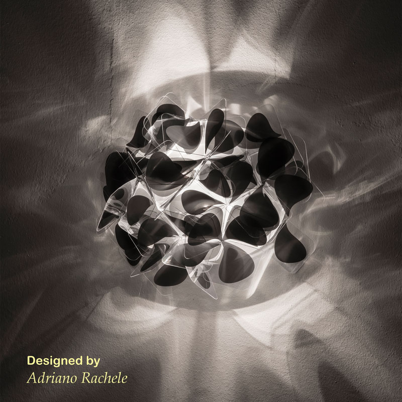 Представете си как изящен ръчно изработен букет от черни и прозрачни листенца украсява стената ви като съвременно произведение на изкуството, превръщайки всяко помещение в галерия на елегантността. Аплик Clizia M от дизайнера Adriano Rachele е въплъщение на женствеността и природната красота - със своите почти безтегловни листенца, той създава балансирана привлекателност и свежа визия. Обгръща помещението с драматична черно-прозрачна светлина за стилни вечери.
