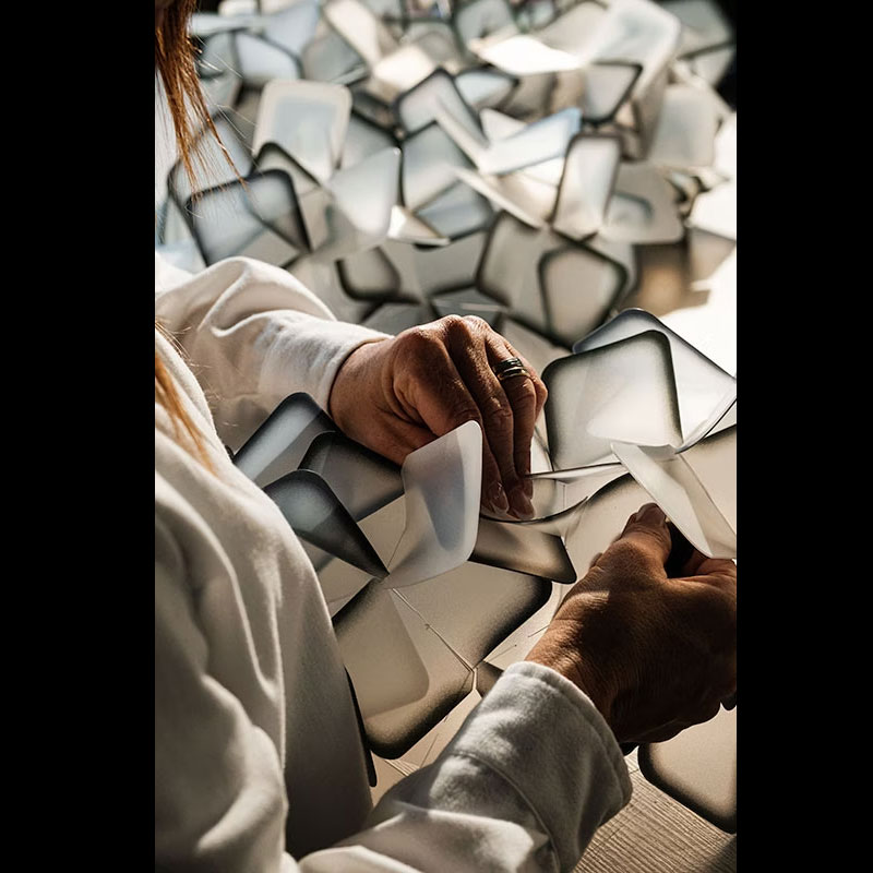 Opalflex® материалът представлява връх на италианските иновации - смес от технополимери и стъклени кристали, избрана заради своята гъвкавост, устойчивост на счупване и нагряване и способност за равномерно разсейване на светлината. Той не се променя с времето и осигурява дълготрайна красота. Осветителното тяло е с тегло от 4,5 кг и магнитна система за окачване, което позволява лесна инсталация, почистване и поддръжка.