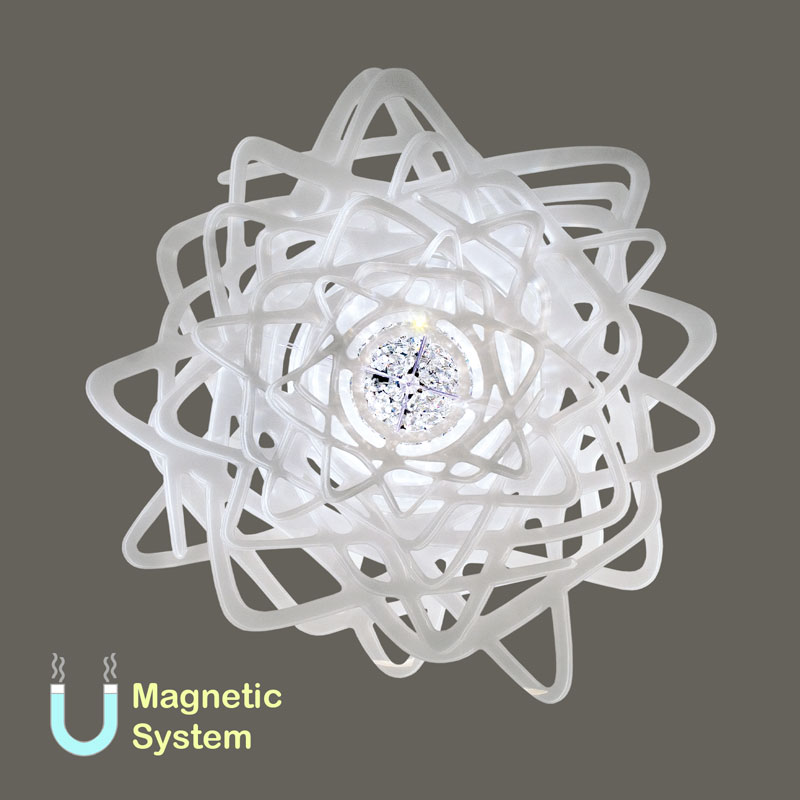 Иновативната магнитна система прави монтажа детска игра, а поддръжката - удоволствие. Когато кристалите се нуждаят от почистване, цялата конструкция се разглобява лесно благодарение на магнитите. С възжможност за димиране, чрез димируема крушка и димерен ключ. Това ви позволява да намалявате и увеличавате силата на светлината от нежно нощно осветление до пълна яркост за ежедневни дейности.