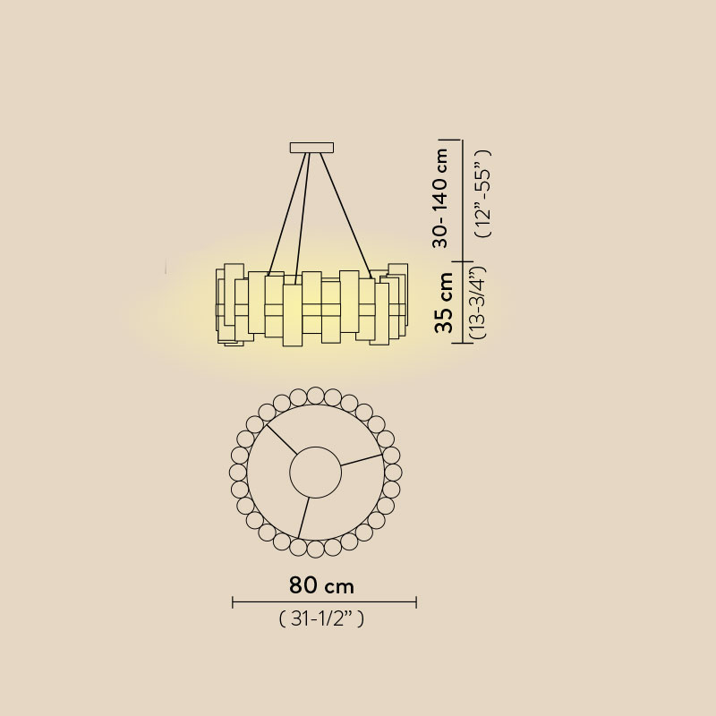 Осветителното тяло е с тегло от 4 кг, което осигурява стабилност и внушително присъствие в помещението. Голямата L версия я прави идеална за високи тавани и просторни интериори, където се търси централен акцент с класическа чистота, за създаване на минималистичен дизайн.