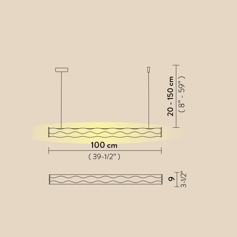 Осветителното тяло е с тегло от само 1,35 кг, което осигурява лесен монтаж и елегантно присъствие във въздуха. Компактните размери го правят идеален за по-малки помещения или като част от по-голяма композиция, за създаване на артистичен дизайн.