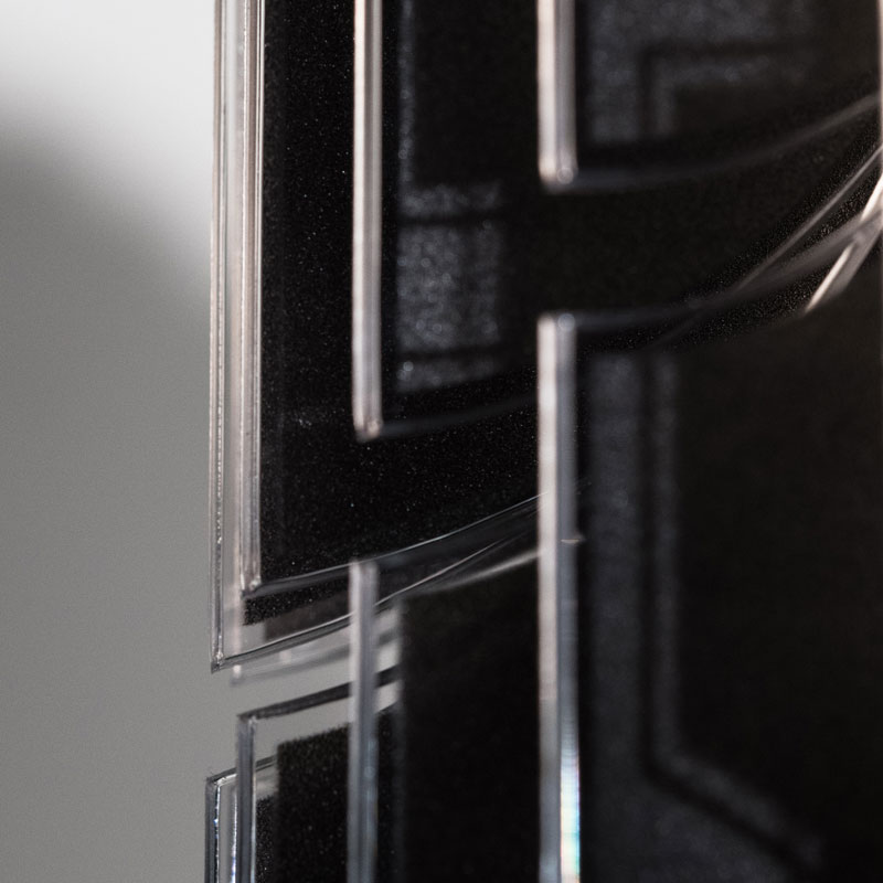В този XL размер визионерският дизайн на Заха Хадид достига своето най-възвишено изражение. Петдесетте слоя от Cristalflex® създават светлинна симфония от невероятна красота, където всеки слой е като нота в божествена мелодия. Лещовидната структура на Lentiflex® превръща светлината в небесен водопад, стичащ се с грация и елегантност през помещението.
