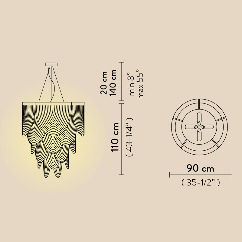 Полилей Ceremony L в бял цвят не е просто осветително тяло - той е светлинен дирижор на небесното величие, който внася атмосфера на чиста церемониалност във всекидневна, бална зала или луксозен хотел. Белият Opalflex® създава въздушен ефект, където светлината се разпространява сред каскадните структури като магически водопад от ангелски пера, превръщайки всяко помещение в свещено място за тържества и създавайки грандиозни моменти на чиста красота и възхищение.
