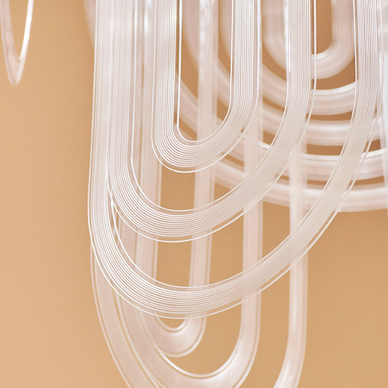 Представете си как ангелска светлинна катедрала от чиста белота се спуска от небесата в дома ви като божествено видение, превръщайки всяко помещение в палат на безгрешната елегантност. Полилеят Ceremony L от дизайнера Bruno Rainaldi е въплъщение на церемониалната чистота - със своите каскадни огърлици от Opalflex®, той създава широки светлинни ефекти, които обгръщат помещението с нежна бяла светлина за незабравими тържествени събития.