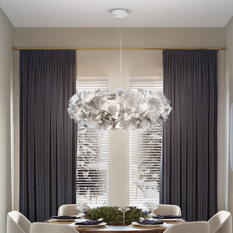 Clizia L в цвят Fumé надминава стандартния полилей - това е архитект на мистичната атмосфера, който въвежда нотки на призматична красота в трапезарии, над кухненски острови или елегантни барове.