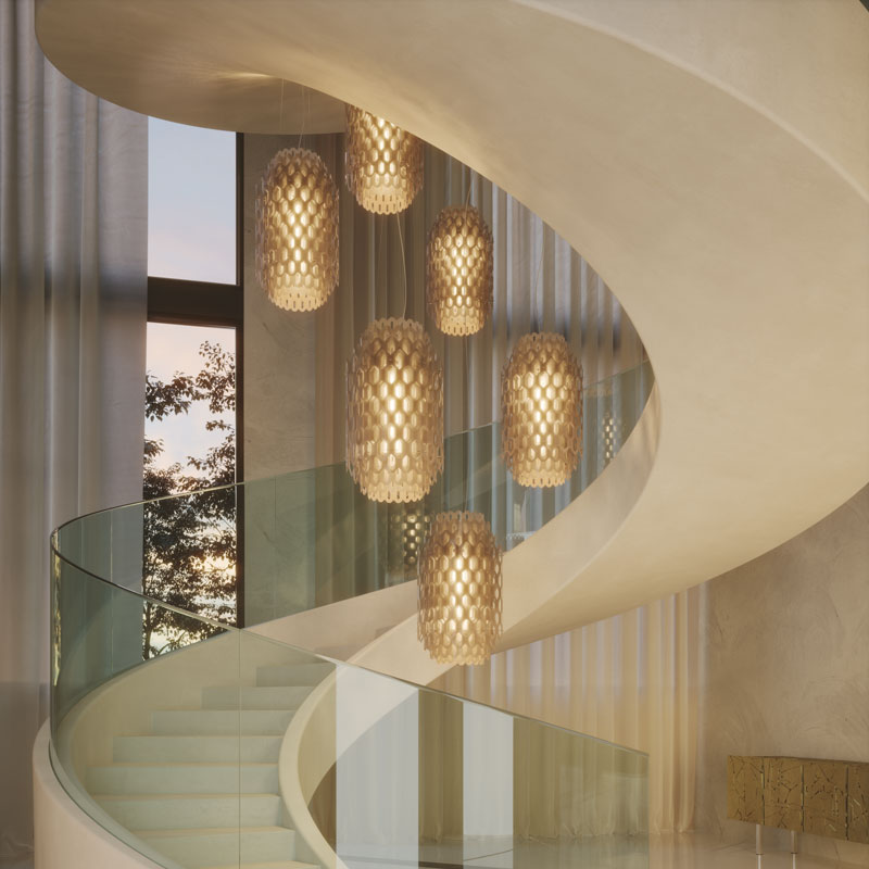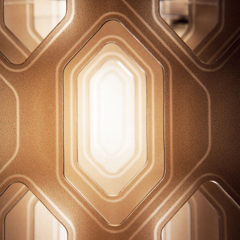 Представете си как скулптурна светлинна структура от топъл оранжев мед се материализира в дома ви като магическа пчелна пита, превръщайки всяко помещение в уютно убежище на природната геометрия. Полилеят Chantal M от визионерите Doriana & Massimiliano Fuksas е въплъщение на природната архитектура - със своите концентрични, шестоъгълни форми, той създава впечатляващи светлинни ефекти, които обгръщат помещението с топла оранжева светлина за приятни есенни вечери.