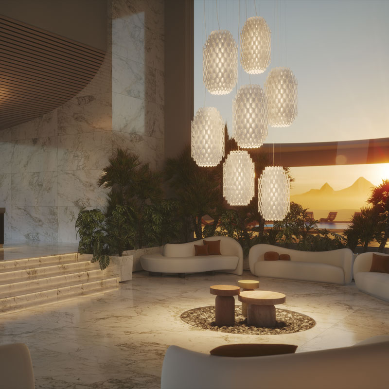Материалите Cristalflex® и Lentiflex® представляват връх на италианските иновации. Cristalflex® предлага блясъка и прозрачността на кристала, но с добавените предимства да бъде лек, гъвкав и устойчив. Lentiflex® се характеризира с лещовидна структура, наподобяваща поредица от призми, които улавят и насочват светлината, създавайки флуиден ефект. Осветителното тяло е с тегло от 4,1 кг и магнитно закрепване, което позволява лесна поддръжка и почистване. При необходимост можете да добавите 6-метров кабел (CHNSM00ORG06T00E27EU) за по-голяма свобода при позициониране.