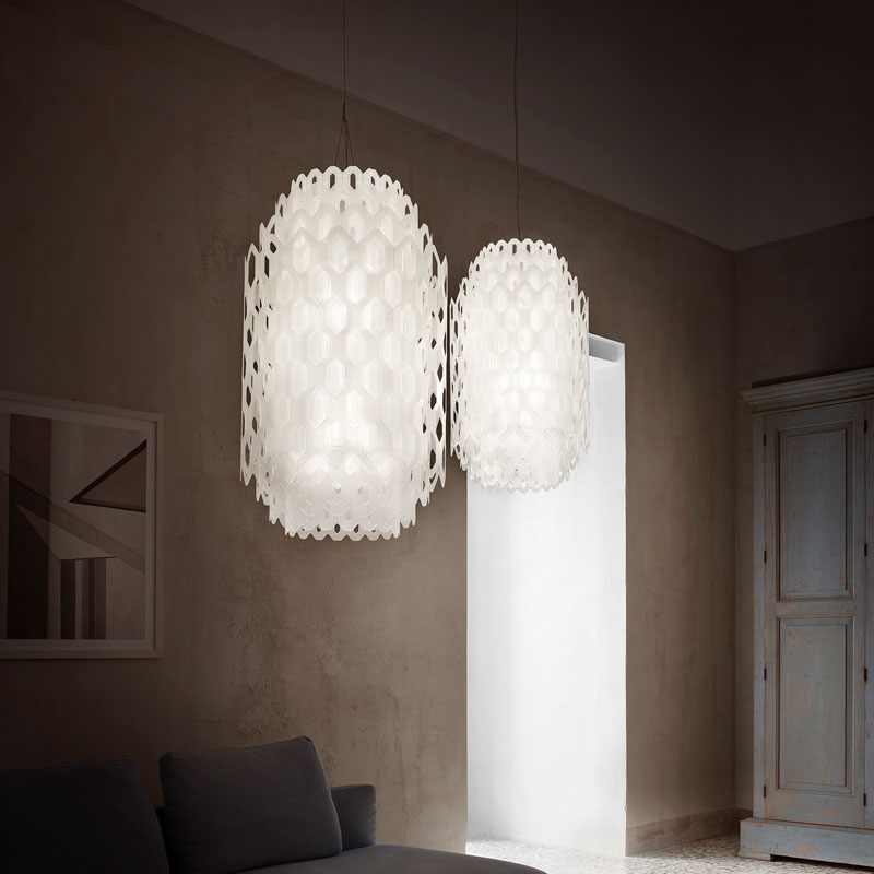 Представете си как изтънчена светлинна структура от чиста белота украсява и акцентира интериора ви, като ангелска пчелна пита, превръщайки всяко помещение в оазис на минималистичната красота. Полилеят Chantal M от визионерите Doriana & Massimiliano Fuksas е въплъщение на природната геометрия - със своите концентрични, шестоъгълни форми, той създава впечатляващи светлинни ефекти, които обгръщат помещението с нежна бяла светлина за спокойни и уютни вечери.