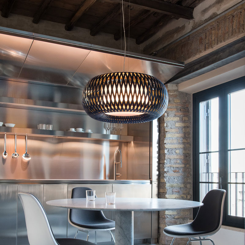 KALATOS е елегантен дизайнерски полилей, създаден от италианската дизайнерка Елиза Джованони. Неговата форма е вдъхновена от древното изкуство на плетенето – традиция, съпътстваща човечеството още от праисторически времена, под формата на кошници и плетени съдове. В този модел традицията е интерпретирана по модерен начин чрез използването на авангардни материали и изчистени линии.