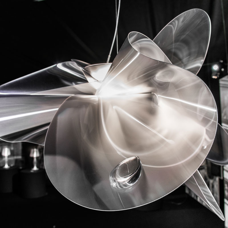 Всеки полилей от серията ÉTOILE L е изработен от Lentiflex® - патентован материал, разработен от италианската компания Slamp. Lentiflex® е технополимерен лист с лещовидна структура, наподобяваща поредица от призми, които улавят и насочват светлината, създавайки уникален визуален ефект, който наподобява флуиден водопад. По-големите размери на L версията позволяват на неосезаемите, грациозни орнаменти да се разгърнат в пълния си блясък. Този уникален подход прави всяко изделие единствено по рода си, с форми и текстури, които никога не могат да бъдат възпроизведени механично.