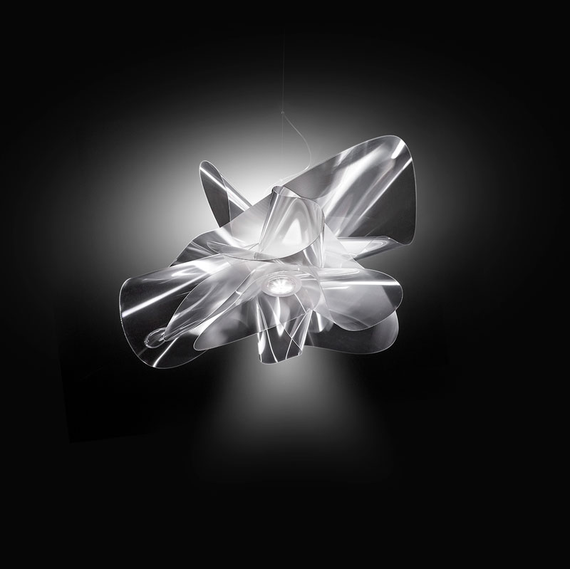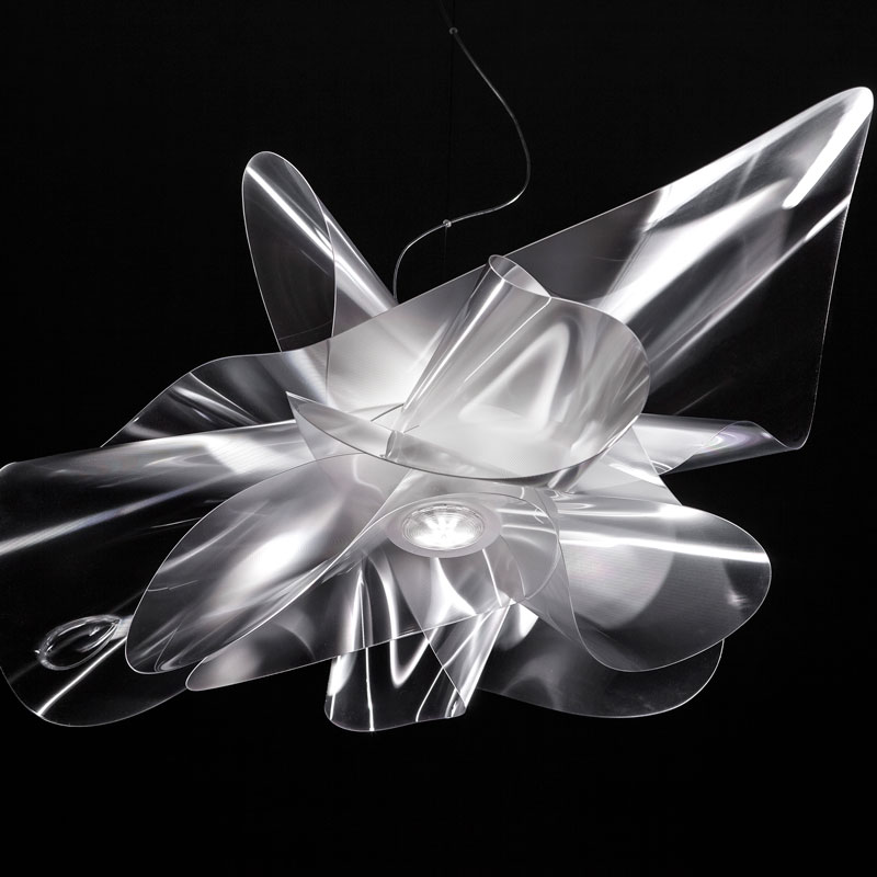 Всеки полилей от серията ÉTOILE S е изработен от Lentiflex® - патентован материал, разработен от италианската компания Slamp. Lentiflex® е технополимерен лист с лещовидна структура, наподобяваща поредица от призми, които улавят и насочват светлината, създавайки уникален визуален ефект, който наподобява флуиден водопад. Неосезаемите, грациозни орнаменти се оформят благодарение на този иновативен материал, който придава баланс на асиметричните крила, точно както е желал дизайнерът. Този уникален подход прави всяко изделие единствено по рода си, с форми и текстури, които никога не могат да бъдат възпроизведени механично.