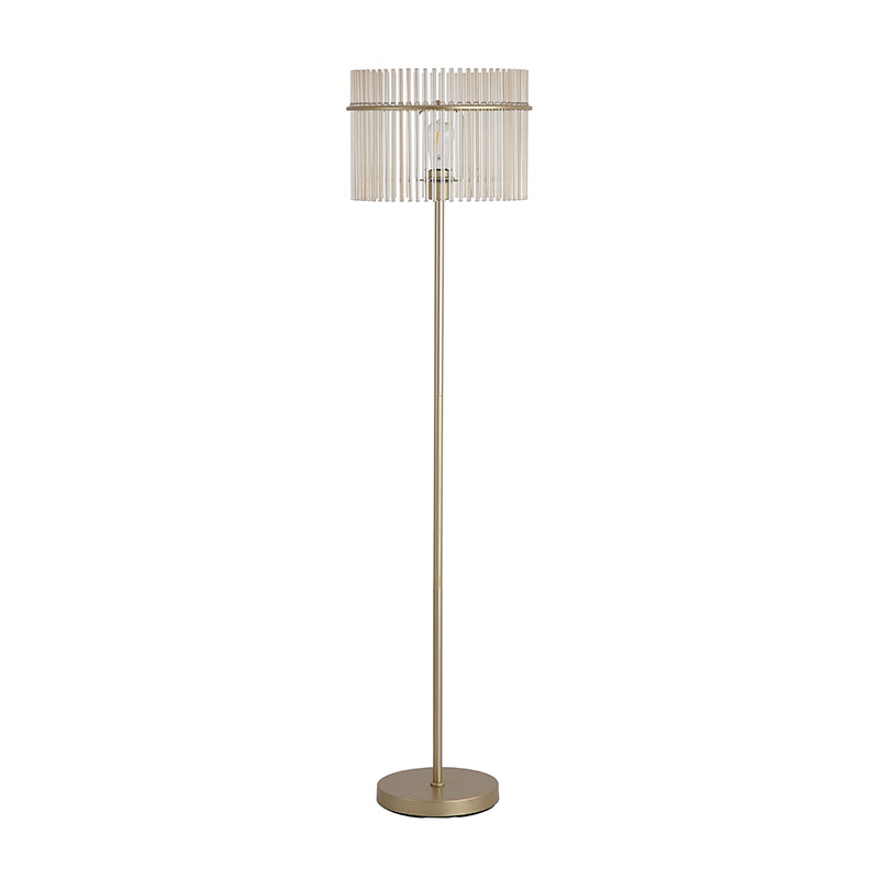 Лампионът Swizzle 1Lt Floor Lamp се отличава с елегантен и изискан дизайн, който комбинира златист метал с шампанско оцветени стъклени пръчици. Фината му, стройна форма го прави стилен акцент в интериора и подходящ избор за дневна, спалня или луксозен кът за релакс.
