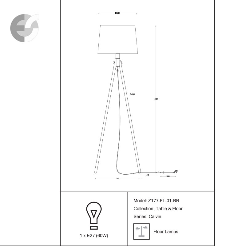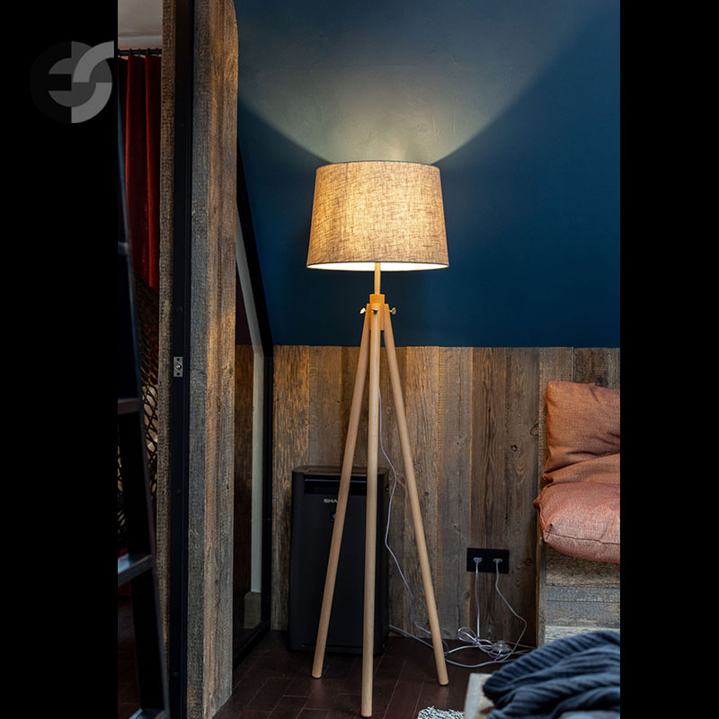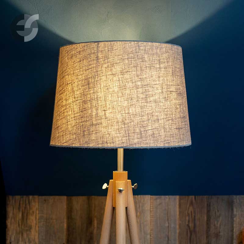 Лампион Calvin, изработен от метал и дърво в естествен бежов цвят, с абажур от памучен плат, който придава топло и меко усещане на светлината. Конусовидната му форма и трипод основа създават стабилна и елегантна конструкция, вдъхновена от класическия стил с лек модерен акцент.