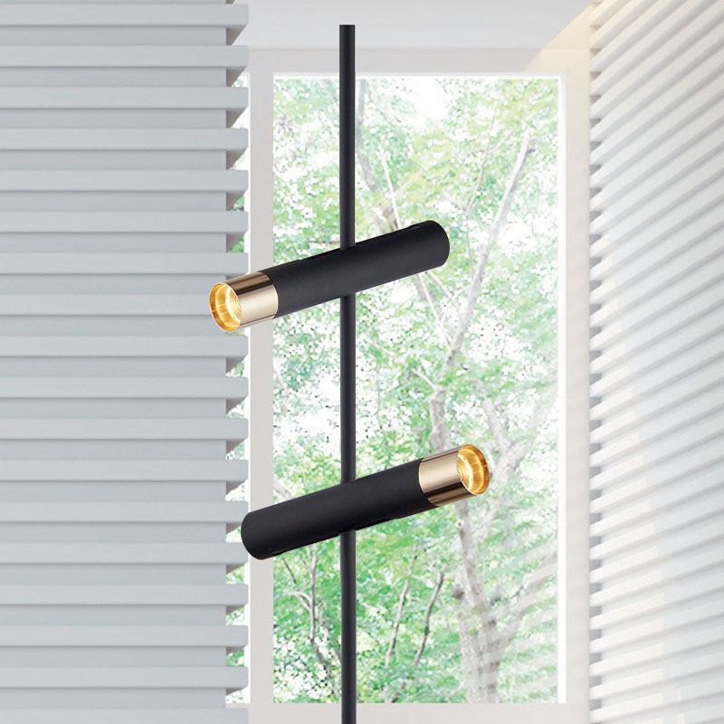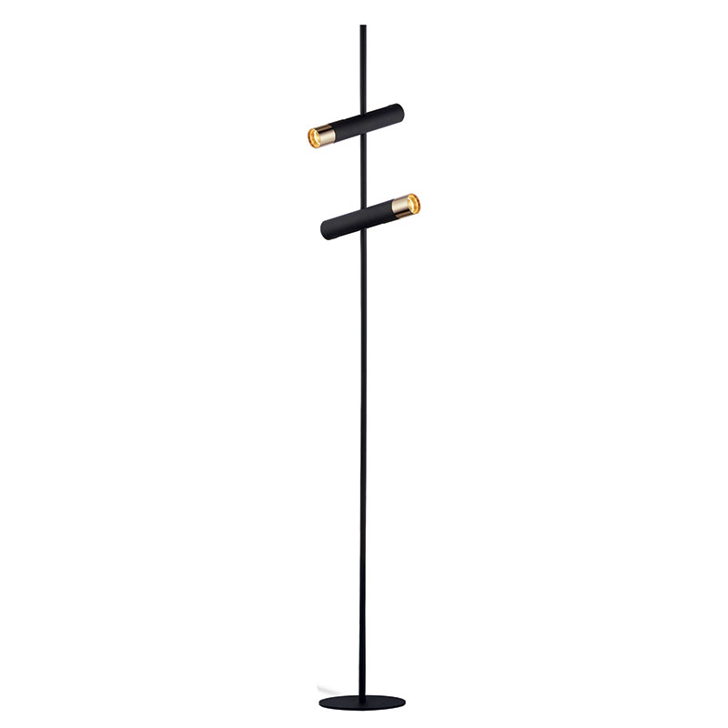 Лампион Cylinder е изработен от метална основа и дифузери в черен цвят със златист акцент. Семплият дизайн на подовата лампа се вписва в различни стилове на интериор. Осветителното тяло е с два светлоизточника, които са с подвижен механизъм и ви позволяват да насочвате светлината към желаната зона. LED лампиона излъчва (3000K топло-бяла светлина), което придава уют и приятна атмосфера в помещението. Подходящ е за всекидневна, спалня или коридор.