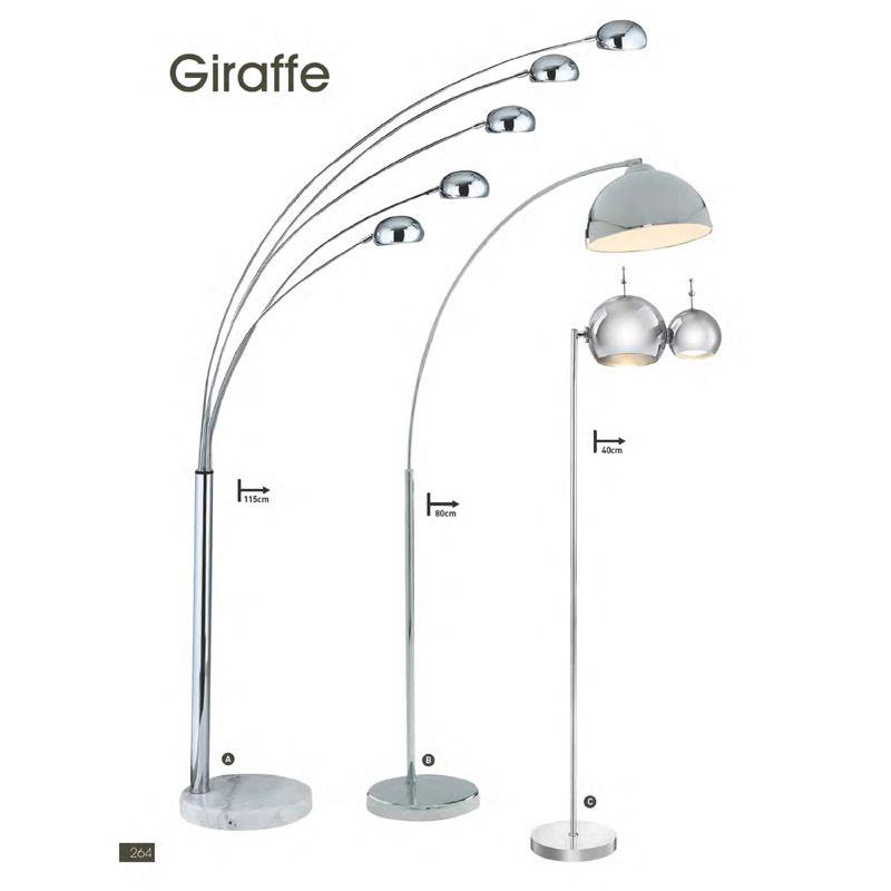 Осветително тяло - лампион с атрактивен дизайн, изработен от метал с хромирано покритие и кръгла мраморна основа. Серия осветителни тела Giraffe на Searchlight, Англия.