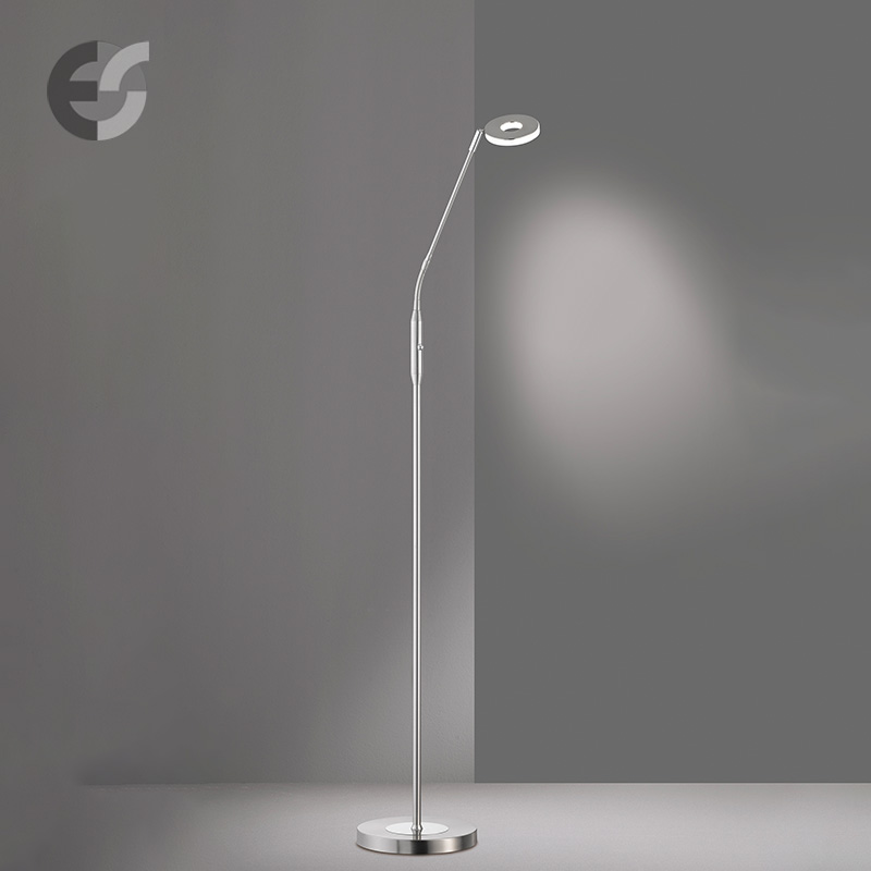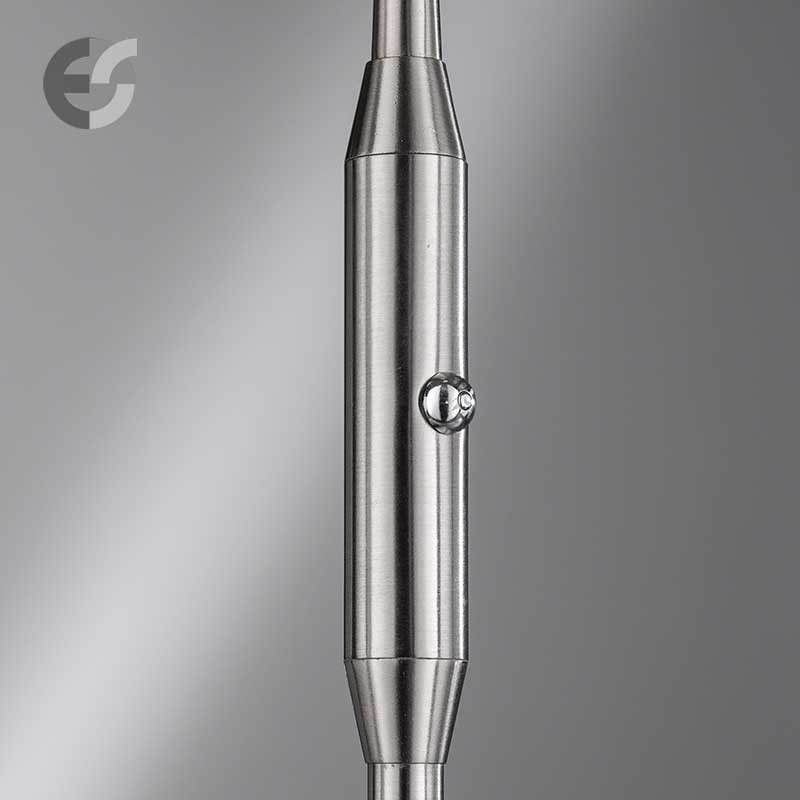 Осветително тяло - лед настолна лампа, изработена от метал в цвят матиран никел с акценти в цвят хром и разсейвател от матирано акрилно стъкло. Настолната лампа е с touch, чрез който лесно можете да променята светлината от топла към студена. Артикулът е от серия DENT. Производител Fischer & Honsel, Германия.