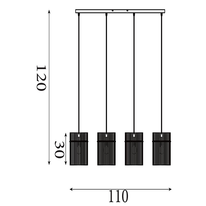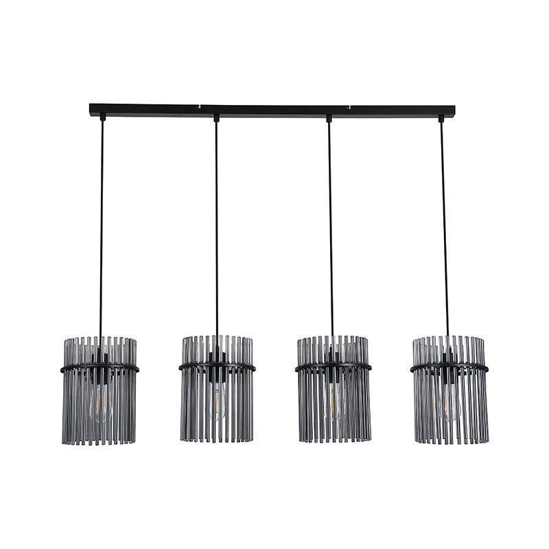 Полилеят Swizzle 4Lt Bar впечатлява с изчистен, модерен дизайн, който комбинира матово черен метал с елегантни опушени стъклени пръчки. Четирите висящи светлоизточника са подредени линейно върху издължена таванна основа, което го прави отличен избор за осветяване на трапезна маса, кухненски остров или бар зона в съвременен интериор.