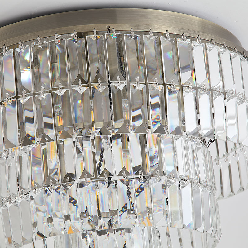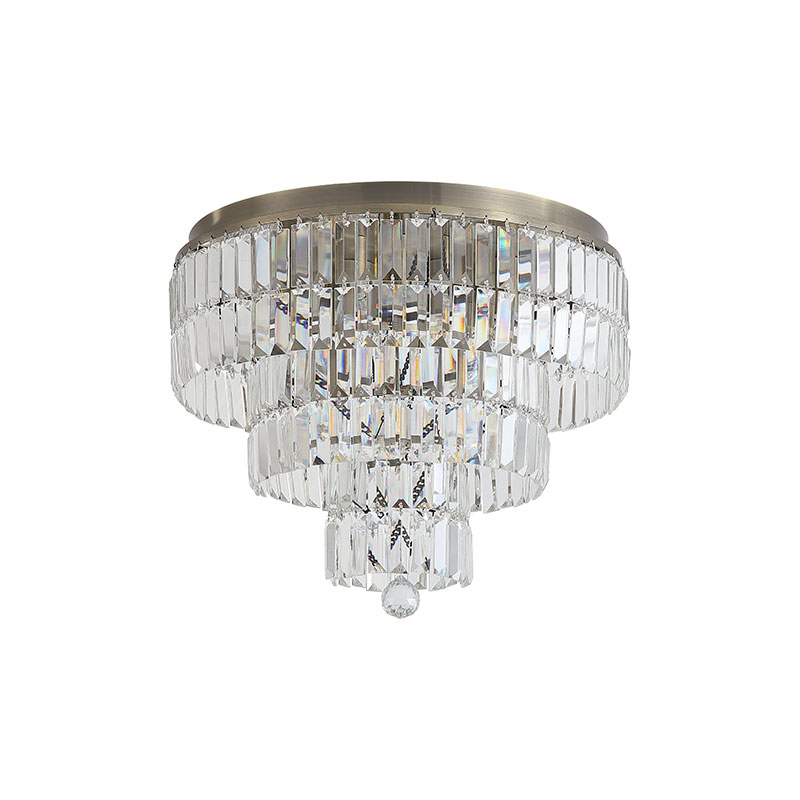 Плафон Empire 6Lt впечатлява с изискан класически дизайн и луксозно излъчване, което превръща осветителното тяло в централен акцент на интериора. Конструкцията от античен месинг е елегантно комбинирана с прозрачни кристални елементи, подредени на няколко нива, които придават дълбочина и визуална динамика.