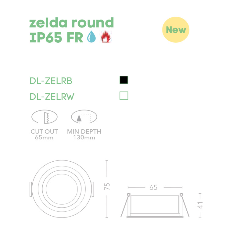 luna za vgrajdane ip65 pojaroustojchiva zelda round ip65 fr Art.No.DL-ZELRB