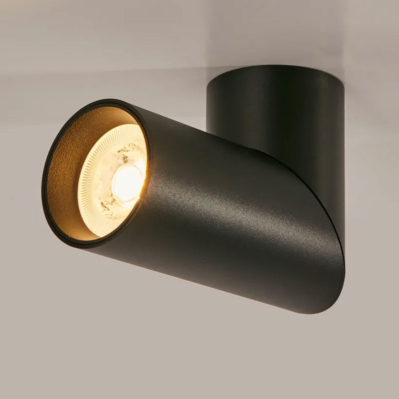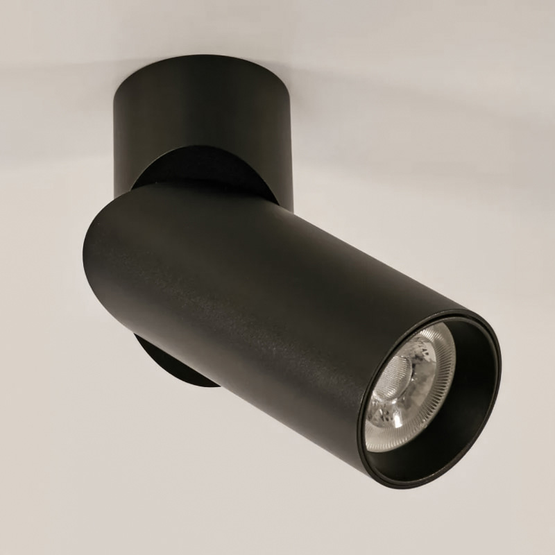 Луна с насочване за открит монтаж Swivel, изработена от алуминий в пясъчно черен цвят с иновативна подвижна конструкция и цилиндрична форма. Лампата за таван се предлага без крушка, с фасунга GU10, което ви позволава да изберете светлоизточник според вашите предпочитания и желана атмосфера.