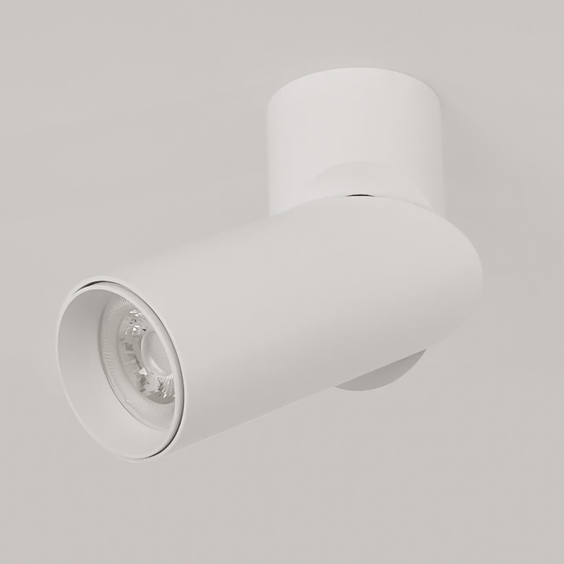 Луна с насочване за открит монтаж Swivel, изработена от алуминий в бял цвят с иновативна подвижна конструкция и цилиндрична форма. Лампата за таван се предлага без крушка, с фасунга GU10, което ви позволава да изберете светлоизточник според вашите предпочитания и желана атмосфера.