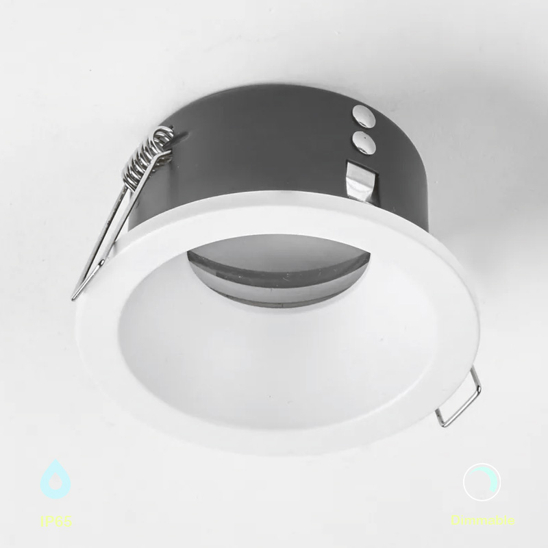 Луна за баня за вграждане Slim Trim IP65, изработена от алуминий в бял цвят с най-тънката възможна рамка, за дискретен монтаж и стилна визия. Лампата за таван се предлага без крушка, с фасунга GU10 (максимум 10W LED), което ви позволява да изберете светлоизточник според вашите предпочитания и желана светлинна атмосфера.