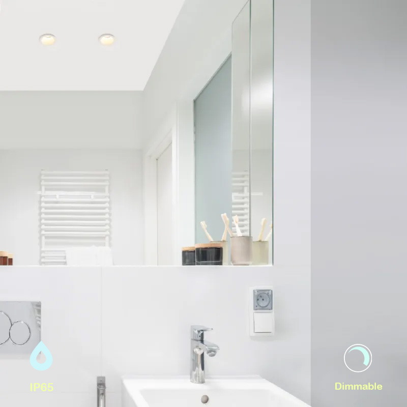 Осветителното тяло е с ниво на защита IP65 - (6 - пълна защита срещу проникване на прахови частици и пълна защита от контакт; 5 - защитен от струя с ниско налягане от всички посоки), което го прави подходящо за използване във влажни помещения. Смяната на крушката се извършва отпред, докато монтажната втулка остава в тавана за лесна поддръжка.