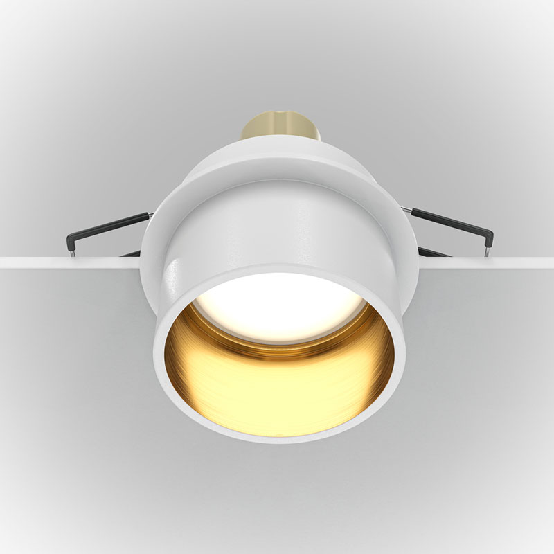 Луничката за вграждане Reif е изработена от висококачествен алуминий в елегантен бял цвят със златист акцент и кръгла форма. Осветителното тяло е с минималистичен дизайн, при който основата се вгражда дискретно в тавана, създавайки чиста и модерна линия в помещението. Светлината е насочена и фокусирана, което добавя стилен акцент към всеки интериор.