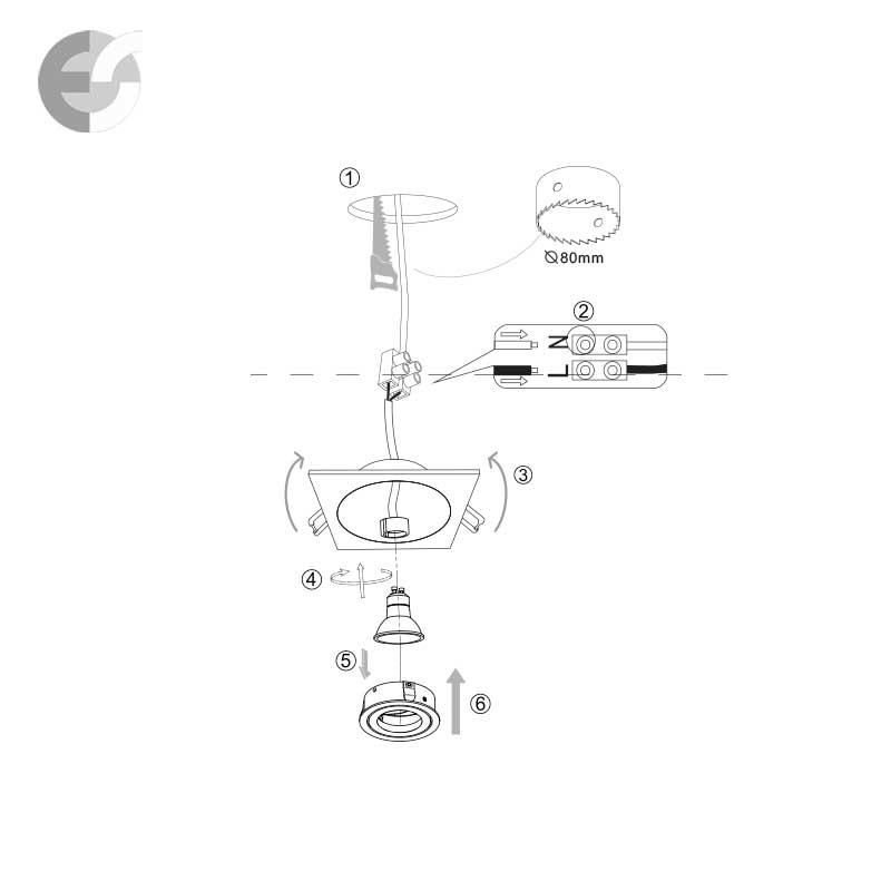 Монтажен отвор (mm): 80