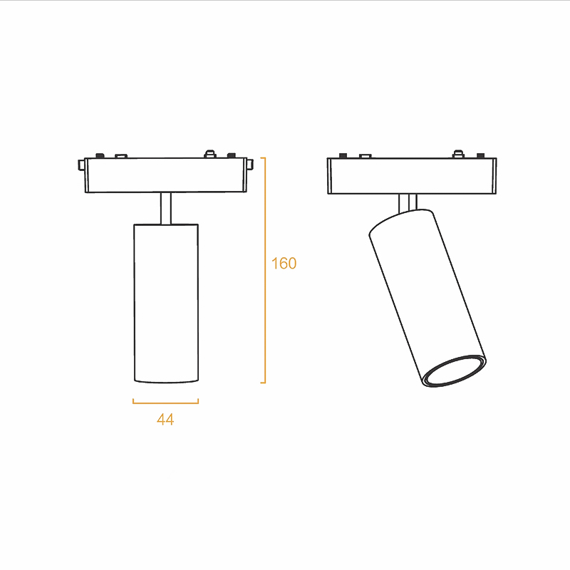 Магнитният осветител се отличава с подвижно тяло и концентриран светлинен лъч, който позволява прецизно насочване на светлината към конкретни обекти или декоративни елементи в помещението. Single Spot дизайнът осигурява фокусирано акцентно осветление с възможност за подчертаване на детайли, произведения на изкуството, продукти в търговски обекти или за създаване на специални светлинни ефекти. Цилиндричната форма и компактните размери правят осветителя изключително елегантен и дискретен.