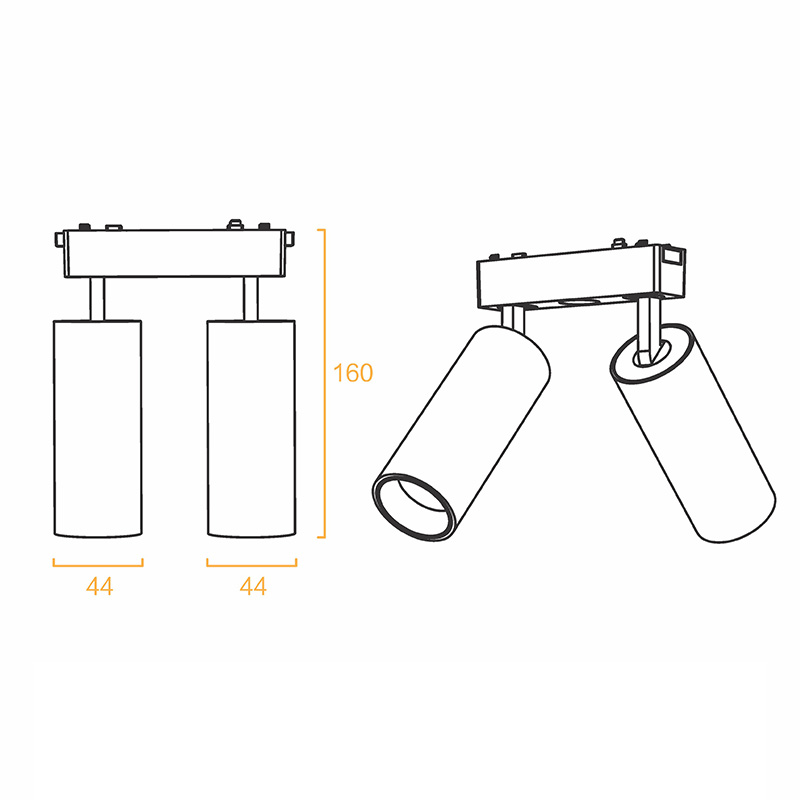 Магнитният осветител се отличава с две подвижни тела с концентриран светлинен лъч, което ви дава възможност за прецизно насочване на светлината в две различни посоки едновременно. Double Spot дизайнът осигурява двойно фокусирано акцентно осветление с възможност за подчертаване на различни обекти, произведения на изкуството, продукти в търговски обекти или за създаване на специални светлинни ефекти в две зони. Двете цилиндрични тела могат да се насочват независимо едно от друго, което предлага максимална гъвкавост при осветлението.